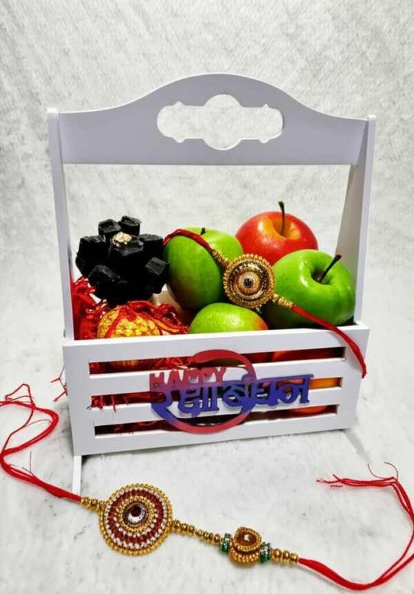 This simple yet stunning Rakhi gift basket is lightweight and easy to carry. It has enough space to keepy 2 glass jars or a variety of other gift items that are perfect for your occasion.